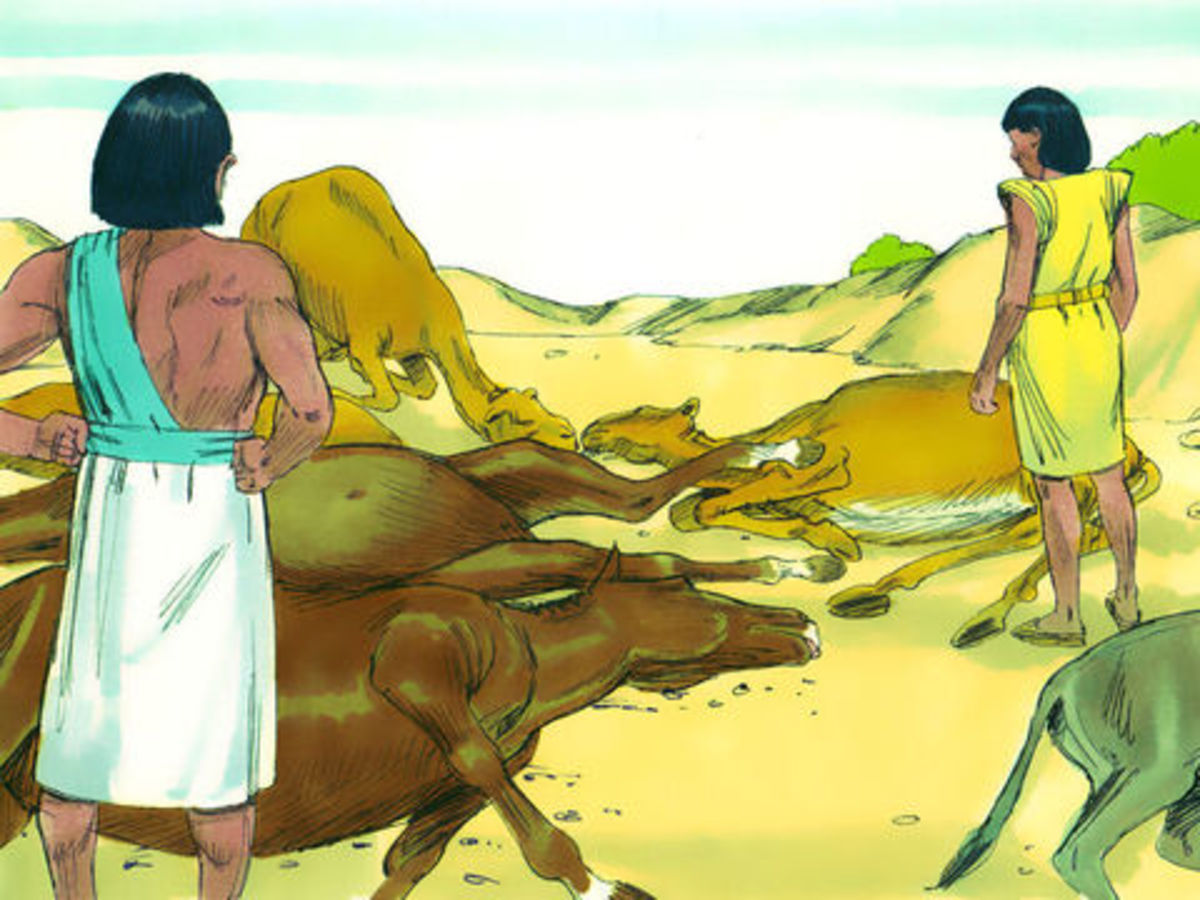 24a Pharaoh sent for Moses and told him that the old and young may go and serve his LORD, but they would have to leave the animals behind.